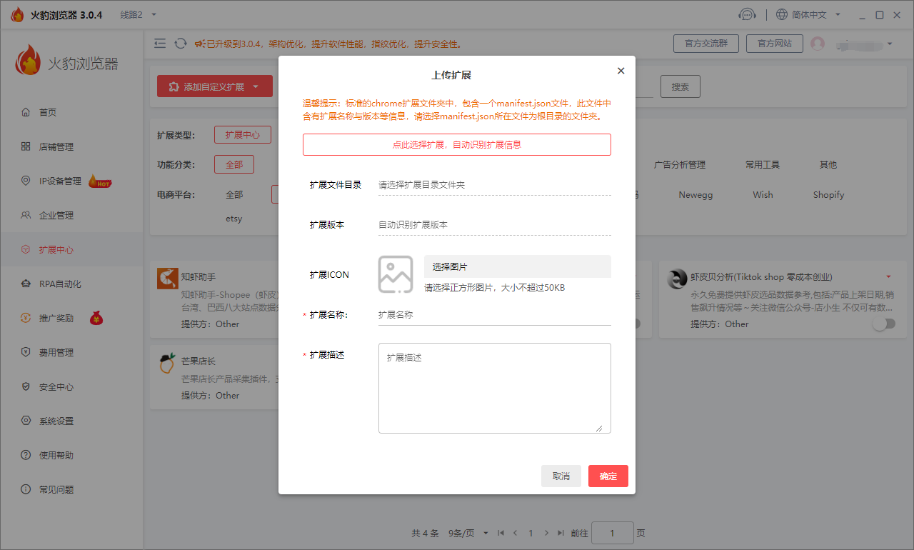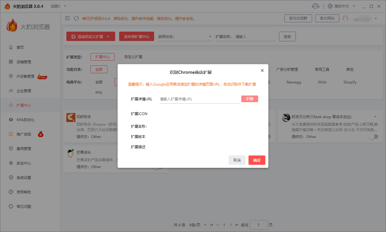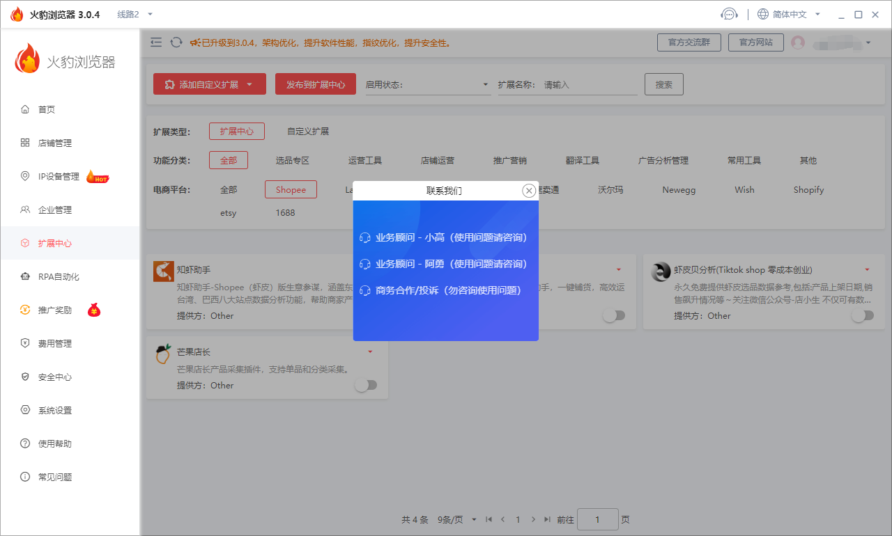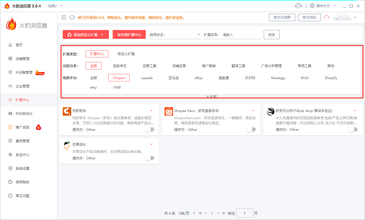 火豹浏览器的店铺扩展可以帮助电商卖家收集和分析用户行为数据,了解消费者的购买习惯和偏好,从而优化商品推荐、营销策略等,提高转化率和销售额。为电商卖家和消费者提供更安全可靠的交易环境。