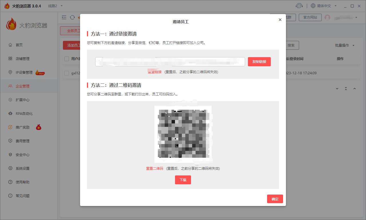 2.邀请员工。(通过二维码等方式邀请员工)