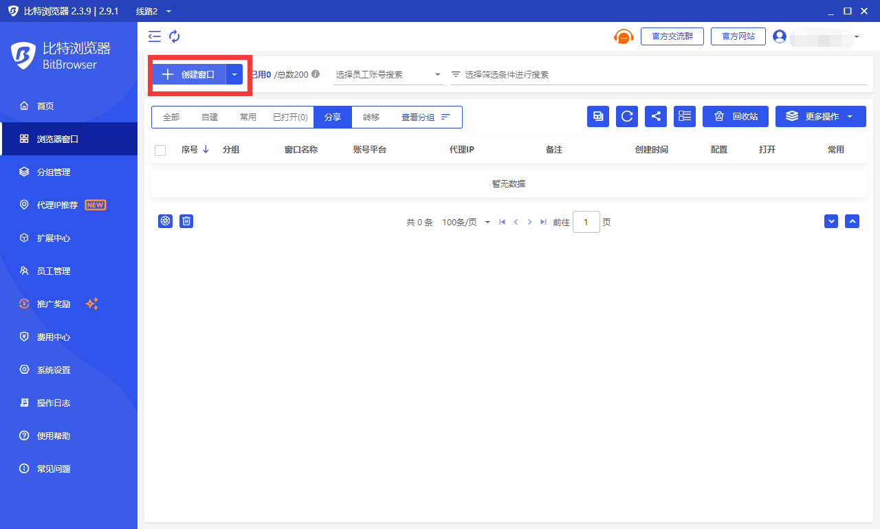 5.打开比特浏览器,选择浏览器窗口,点击“创建窗口”。