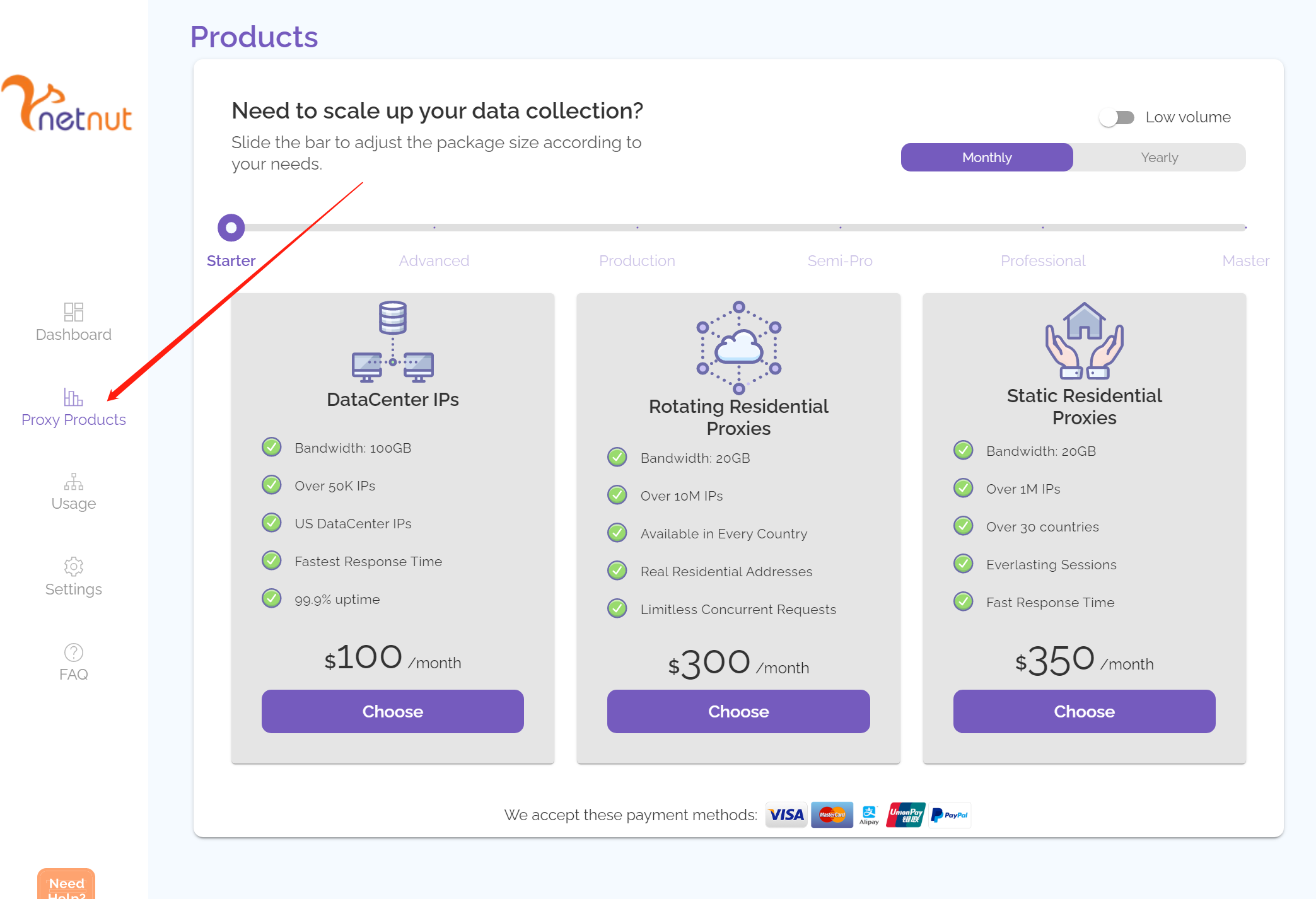 第3步、选择代理类型。NetNut支持HTTP/HTTPS/SOCKS5协议。