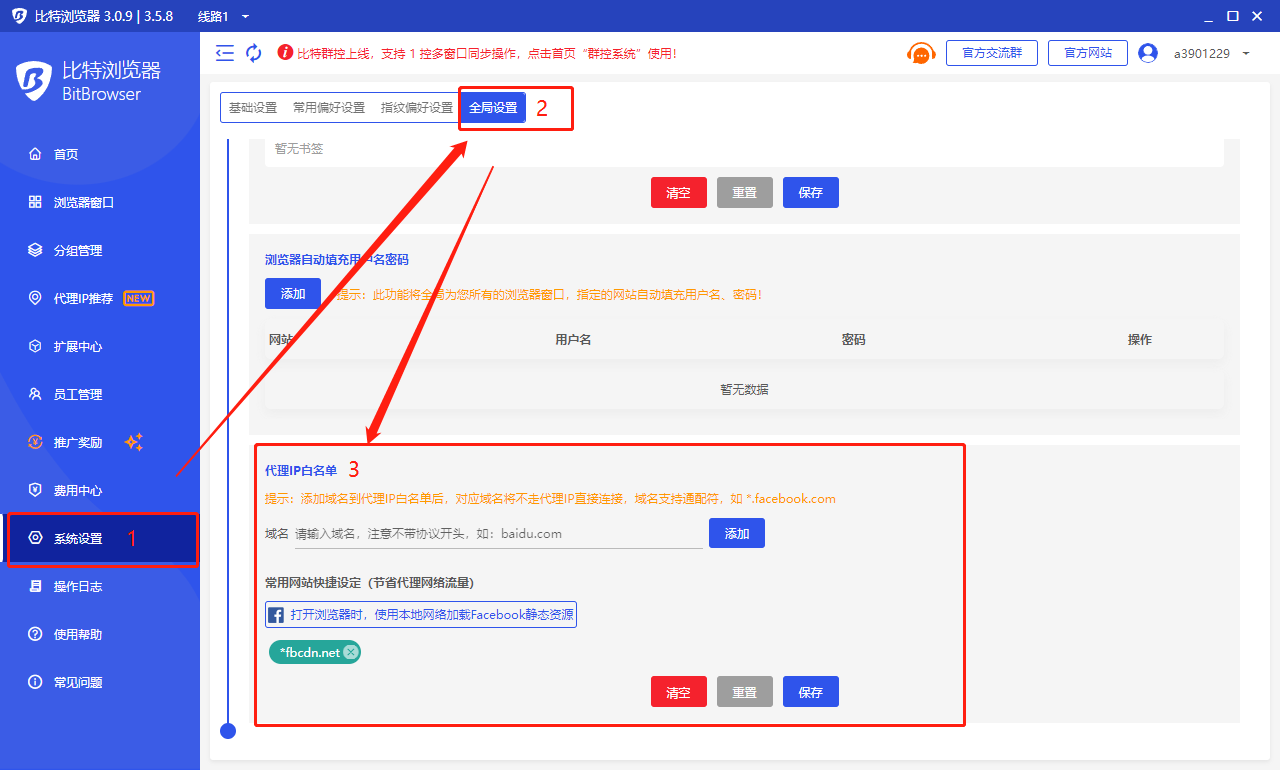 1.首先,打开“系统设置”,然后下拉到全局设置“代理IP白名单”。
