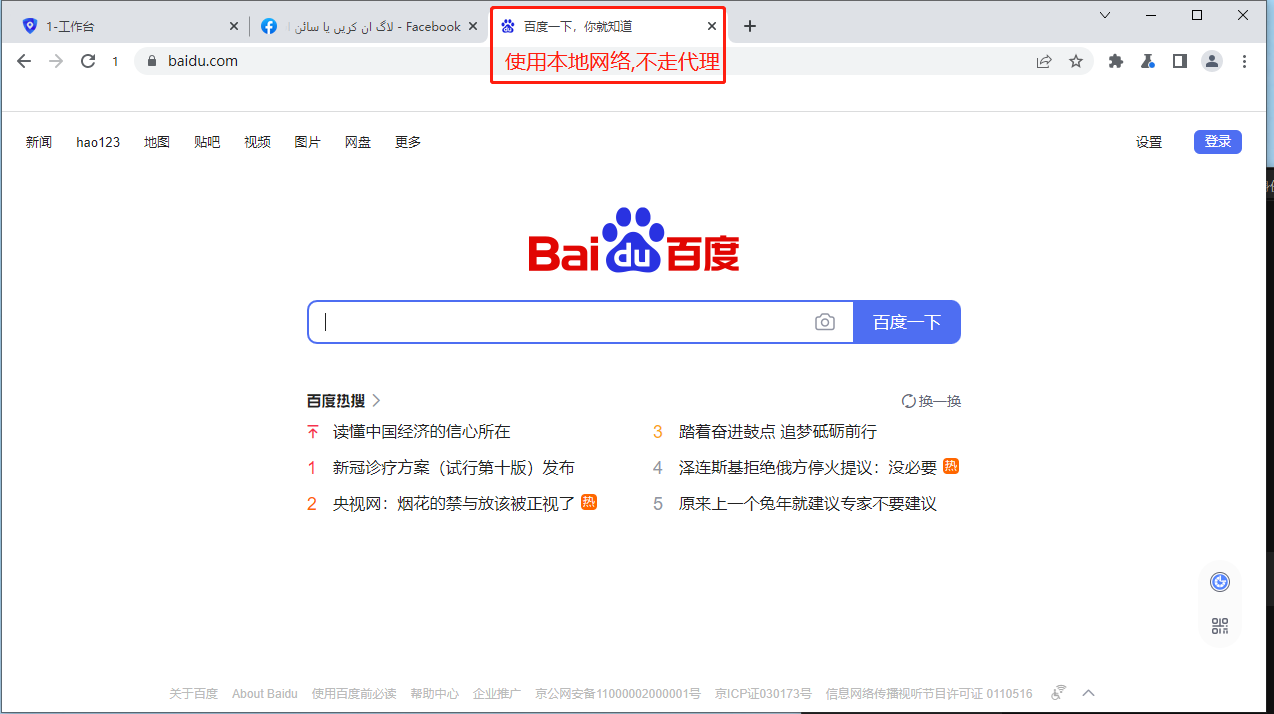 3.这样一来,任何浏览器窗口,打开我们添加到代理IP白名单中的网站都将不走代理IP网络,而是走本地网络,节省代理流量的使用!