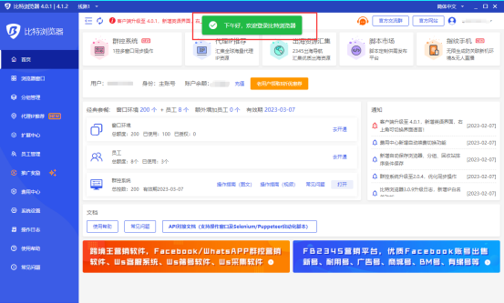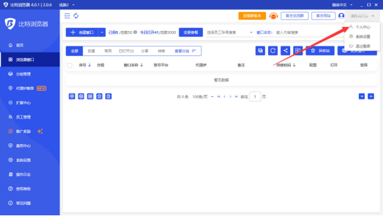 1. 登录比特指纹浏览器选择“个人中心”点击进入。