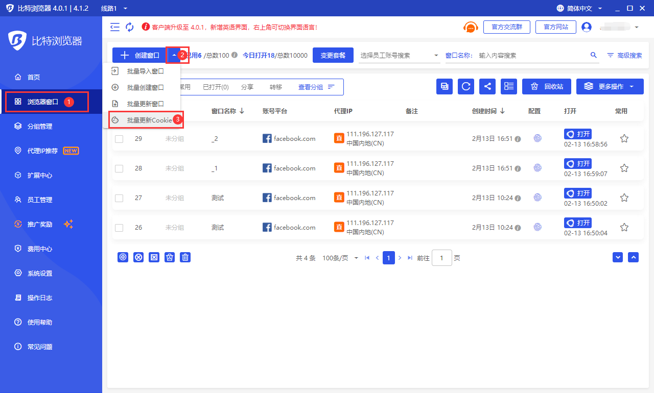 比特浏览器批量导出Cookie/批量更新Cookie