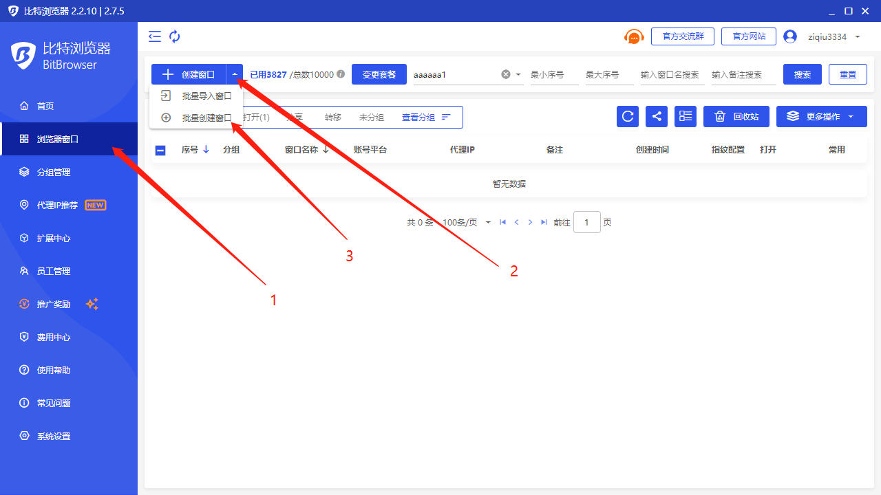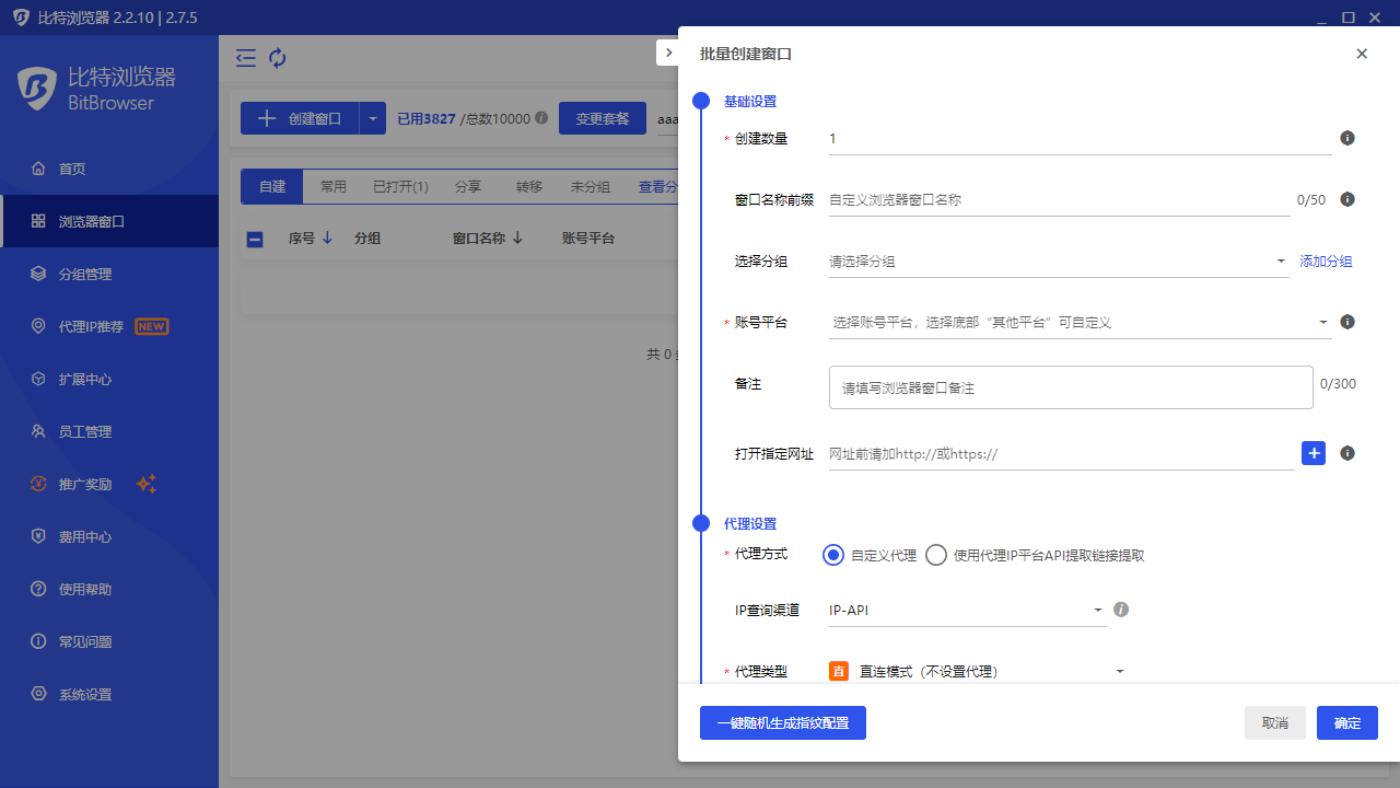创建数量:可根据自己需要批量创建多个窗口数量。